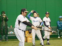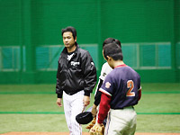 練習会も兼ねた野球教室です。講師はタイガースJrチーム監督の中田良弘さん、