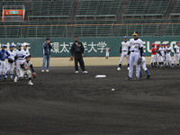 - プロ野球も行われるグラウンドでのノック。気合いが入ります。