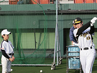 大熊忠義さんの3名で行われました。横谷さんは故郷岡山での野球教室です。