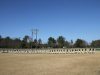 - 少し寒いですが、快晴の下、みんなでランニング。