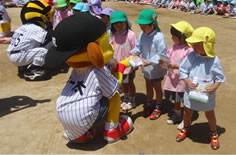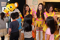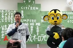 球団マスコットの「トラッキー」、「ラッキー」、「キー太」が様々なコミュニティ活動に参加しました。