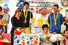 2月5日(木)沖縄南風原町の沖縄県立南部医センター・こども医療センターを訪問し、小児病棟での交流会に 参加しました。病気と闘う子供達がいつ甲子園へ観戦に訪れてもいいように、休まず試合に出続けると「鉄人宣言」をしました。また、鳥谷選手はフィリピンの恵まれない子供たちに靴を贈る活動の立ち上げにも携わりました。藤井彰人選手がトラッキーとともに小児科病棟を訪問
