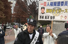 青柳晃洋選手が「人権週間街頭啓発キャンペーン」一日人権擁護委員に
