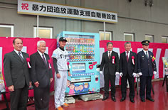 自販機の設置提案に賛同した企業が、本来飲料メーカーより自販機の設置企業に支払うべき手数料を市に寄付金として納入するものです。 - 2015年6月より1塁アルプスコンコース内に39(サンキュー)矢野基金「応援自販機」を設置しており、本年もこの自販機の売上の一部を筋ジストロフィー患者・児童養護施設の子どもたちへの応援基金として「39(サンキュー)矢野基金」へ寄付しました。