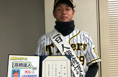 岩貞祐太選手が地震復興支援の義援金贈呈および野球ボールを寄贈