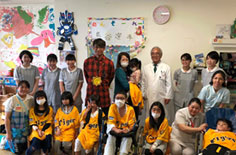 2月4日(月) 沖縄県立南部医療センター・こども医療センターへ訪問し、子供達にカバンやTシャツを80セット準備し、入院している一人一人に手渡しました。