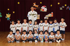 園より西宮市からの感謝状を送られた能見選手は、園児たちと玩具で一緒に楽しんだり、記念写真を撮るなどして園児たちとふれあい、また、園児からは御礼に歌のプレゼントをいただきました。