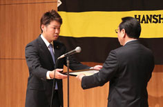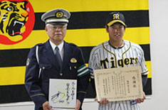 梅野隆太郎選手に交通安全啓蒙活動への感謝状贈呈
