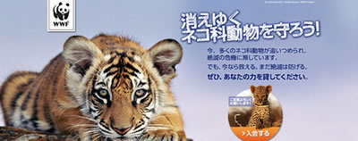 WWF(World Wide Fund for Nature:世界自然保護基金)が取り組む「消えゆくネコ科動物を守ろう」のPR協力として、年間通して公式サイトトップページにバナーを掲出しています。