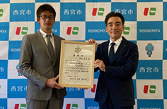 能見選手へは、西宮市の石井登志郎市長より感謝状が送られました。