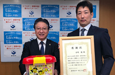 岩貞祐太選手が熊本県益城町役場に寄付