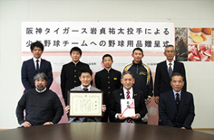 岩貞祐太選手が熊本県益城町の少年野球チームへ野球用品を寄贈