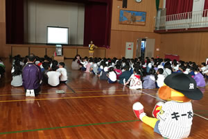 「ドリームリンクスクール」は、阪神タイガースの本拠地である阪神甲子園球場がある兵庫県西宮市の小学校に訪問し、野球を題材に「西宮」を楽しく学ぶこと、また、タイガースの選手からのメッセージで夢を持つことの大切さを伝えることを目的に、キー太とTigers Girlsが小学校を訪問し特別授業を行うというものです。