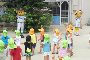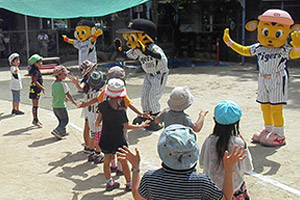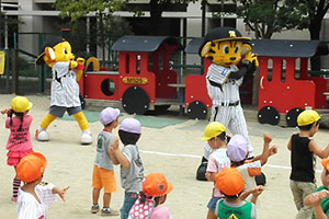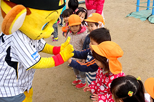 地域のみなさまとのコミュニケーションを大切にし、子どもたちの健全な育成を願う阪神タイガースが、近隣の幼稚園・保育所を訪れ、子どもたちとマスコット「トラッキー・ラッキー・キー太」とのふれあいの場を大切したイベントで、過去10年間で300園を訪問し約48,000人の子どもたちと楽しい時間を共有しております。