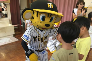 今年も地域のみなさまとのコミュニケーションを大切にしたふれあいイベント「トラッキー・ラッキー・キー太とあそぼう!」を実施します。これは、阪神タイガースが取り組む「Dream Link プロジェクト」の一環として、阪神タイカースマスコット「トラッキー・ラッキー・キー太」が近隣の幼稚園・保育園を訪れ、子どもたちと楽しくふれあいの時間を過ごすというものです。子どもたちの健全な育成を願うこの取り組みは、これまで過去16年間で484園を訪問し、約71,000人の子ども達と楽しい時間を過ごしてまいりました。
