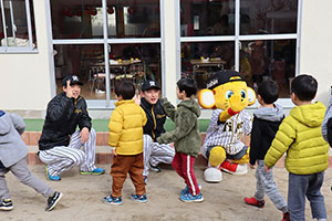 今年も地域のみなさまとのコミュニケーションを大切にしたふれあいイベント「トラッキー・ラッキー・キー太とあそぼう!」を実施します。これは、阪神タイガースが取り組む「Dream Link プロジェクト」の一環として、阪神タイカースマスコット「トラッキー・ラッキー・キー太」が近隣の幼稚園・保育園を訪れ、子どもたちと楽しくふれあいの時間を過ごすというものです。子どもたちの健全な育成を願うこの取り組みは、これまで過去17年間で532園を訪問し、約77,000人の子ども達と楽しい時間を過ごしてまいりました。
