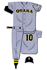 戦前にもOSAKAレターのグレーのユニフォームがあったが、書体も全体のデザインも、形がまったく違っていた。新ビジター用は胸マークの書体をはじめとして、時代のスタイルをそのまま取り入れていた。