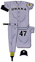 さて、そんな天覧試合でタイガースが着ていたビジター用ユニフォームだが、帽子マークの他に特徴的な部分はといいますと、やはり背番号の書体だろうか。独特の書体は天覧試合の前年の58年から採用されていた。本来ならば村山投手の11番のユニフォームを紹介すべきなのだが、11では書体がよく分からない。で、今回は当時のもうひとりのエース、小山正明投手の47番を掲載させてもらうコトにした。