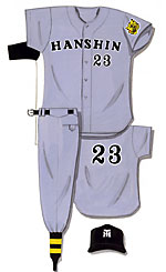1961年に大阪タイガースから阪神タイガースと名称を変更したときのユニフォームである。このときから帽子もHTマークとなった。