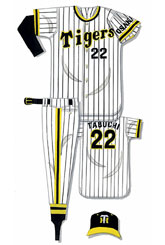 しかしそこまでは激しくはなかったが、実はタイガースもダブルニットによるユニフォームのカラフル化に、しっかりと巻き込まれていたのであった。74年に登場したユニフォームはラインや帽子の庇などに黄色が採用され、今までにない派手なスタイルになっていた。もともと黄色は60年代にもストッキングの縞とビジター用ユニフォームの虎の袖章に使われており、72年からは帽子マークのHの文字が黄色になったのだが、ここで一気にその占有面積を拡大したのであった。