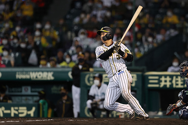 大山悠輔、背番号3。出場数は、昨年よりもペナントレースの試合数自体が短くなったこともあり、前年の143試合より減った116試合。しかしながら、本塁打の数は14本(2019年)から、ちょうど倍となる28本を記録した。リーグの本塁打ランキングでは2位タイ、打点ランキングでも3位につけるなど、まさに“リーグを代表する打者”の仲間入りを果たした主砲は、激動の一年をゆっくりと振り返ってくれた。