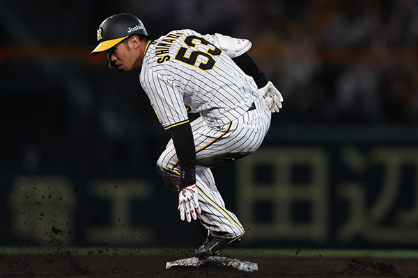 7月の戦いを終えた時点で、すでに昨年を上回る78試合に出場。シュアなバッティングと広い守備範囲で攻守に渡って活躍を見せており、最大の武器である足ではチームでは近本、中野に次ぐ12盗塁をマーク。走・攻・守のあらゆる分野で、自分らしさを発揮しているのがこの男、島田海吏だ。
