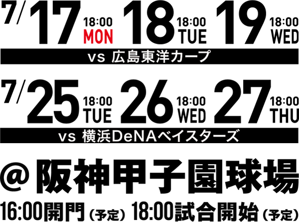 阪神タイガースでは、7月17日(月・祝)~19日(水)の対広島東洋カープ戦、7月25日(火)~27日(木)の対横浜DeNAベイスターズ戦において、夏の一大イベント“ウル虎の夏2017”を開催します。