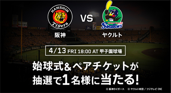 2018年4月13日(金)対東京ヤクルトスワローズ 18:00 阪神甲子園球場