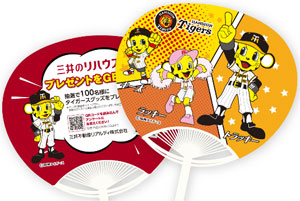 また、うちわには、抽選で100名様にタイガースグッズが当たるアンケート案内を記載しております。是非ご応募ください。