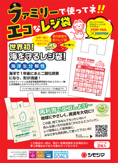 - 各入場門にてご来場者様に、“STOP PAIL×ENERFISHポリ袋・米ぬかエコバック” をプレゼントいたします。