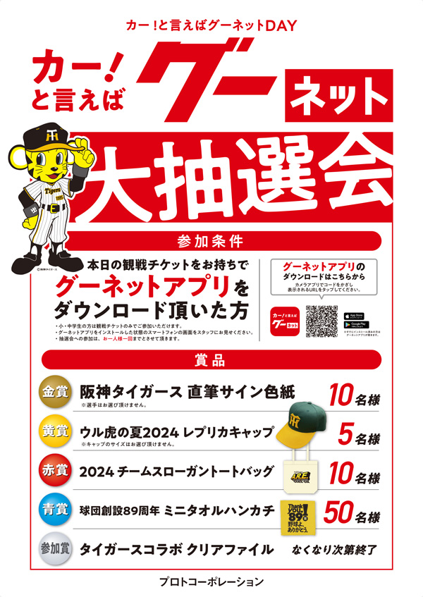 - 各入場門にてご来場者様に、“プロトコーポレーション×阪神タイガース オリジナルうちわ”をプレゼントいたします。