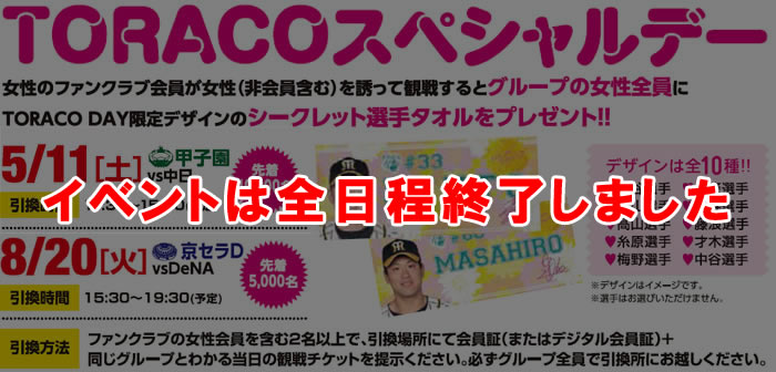 - ●引換場所は場内にはございません。阪神甲子園球場では再入場は出来ませんので必ずお引き換えの上ご入場ください。