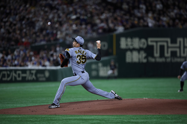 まだ記憶に新しい、16日のドジャースとのMLBプレシーズンゲーム(東京ドーム)。先発した右腕は大谷翔平を2打数無安打に抑えるなど、5回1安打無失点7奪三振の快投で世界に衝撃を与えた。敵将のロバーツ監督も「投げていた球はメジャー級。スプリットも良くてコントロールも良くて」と大絶賛。試合後に「いい経験をさせてもらった。今後の野球人生に活かしたい」と余韻をかみしめていた才木が、最高の状態に仕上げてきた。