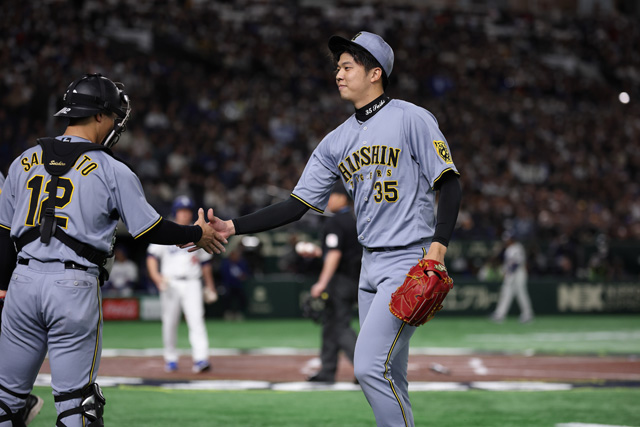 その第1戦に先発し、5回7安打1失点の粘投も報われず、敗戦投手となったのが才木だった。「特に変わらない。いつも通り試合の中の感覚と、その中でしっかりトレーニングとかしっかり調整っていうところで、いつも通りやっています」。150キロを超える直球に宝刀フォーク、スライダー、ドジャース戦後にグラスノーから教わった新球の“パワーカーブ”…。着実に進化の道を歩む。