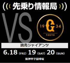 6/18・6/19・6/20 読売ジャイアンツ戦 甲子園