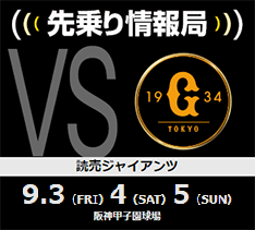 9/3・9/4・9/5 読売ジャイアンツ戦 甲子園