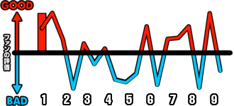 1試合を通じてどのシーンが盛り上がったかを視覚的に伝えます。