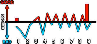 1試合を通じてどのシーンが盛り上がったかを視覚的に伝えます。