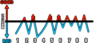 1試合を通じてどのシーンが盛り上がったかを視覚的に伝えます。
