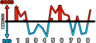 1試合を通じてどのシーンが盛り上がったかを視覚的に伝えます。