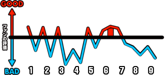 1試合を通じてどのシーンが盛り上がったかを視覚的に伝えます。