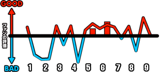 1試合を通じてどのシーンが盛り上がったかを視覚的に伝えます。