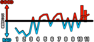 1試合を通じてどのシーンが盛り上がったかを視覚的に伝えます。