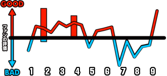 1試合を通じてどのシーンが盛り上がったかを視覚的に伝えます。