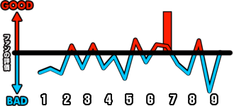 1試合を通じてどのシーンが盛り上がったかを視覚的に伝えます。