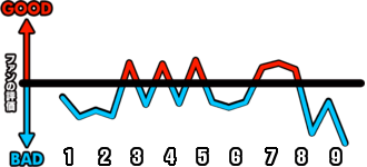 1試合を通じてどのシーンが盛り上がったかを視覚的に伝えます。