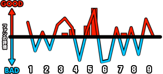 1試合を通じてどのシーンが盛り上がったかを視覚的に伝えます。