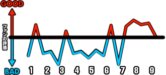 1試合を通じてどのシーンが盛り上がったかを視覚的に伝えます。