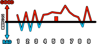 1試合を通じてどのシーンが盛り上がったかを視覚的に伝えます。