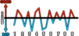 1試合を通じてどのシーンが盛り上がったかを視覚的に伝えます。